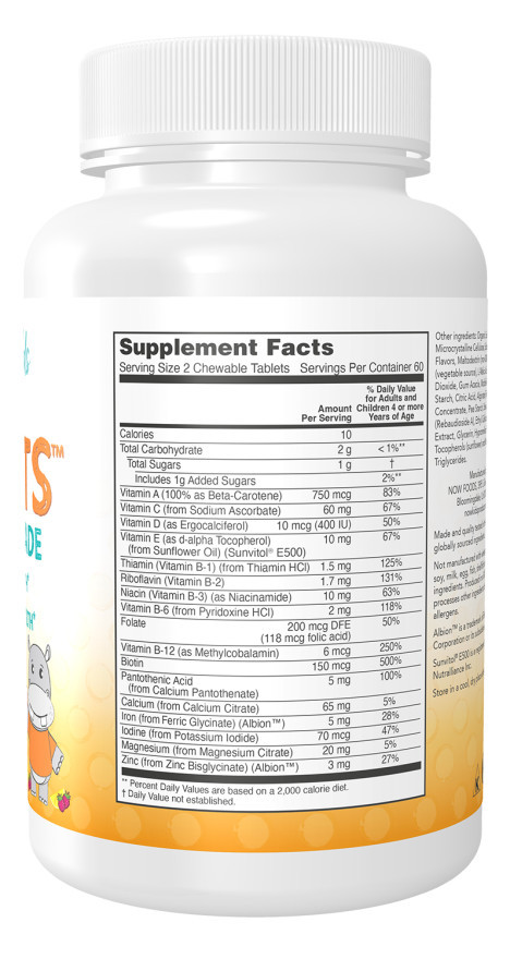 Egyéb összetevők: szerves nádcukor, mikrokristályos cellulóz, szorbit, természetes aromák, maltodextrin (nem GMO), sztearinsav (növényi eredetű), L-almasav, szilícium-dioxid, gumi akác, módosított tápióka keményítő, citromsav, alginát, rizs Héj koncentrátum, borsókeményítő, Stevia levél kivonat (Rebaudiozid A), etil-cellulóz, rozmaring kivonat, glicerin, hipromellóz, vegyes tokoferolok (napraforgó) és közepes láncú trigliceridek.
