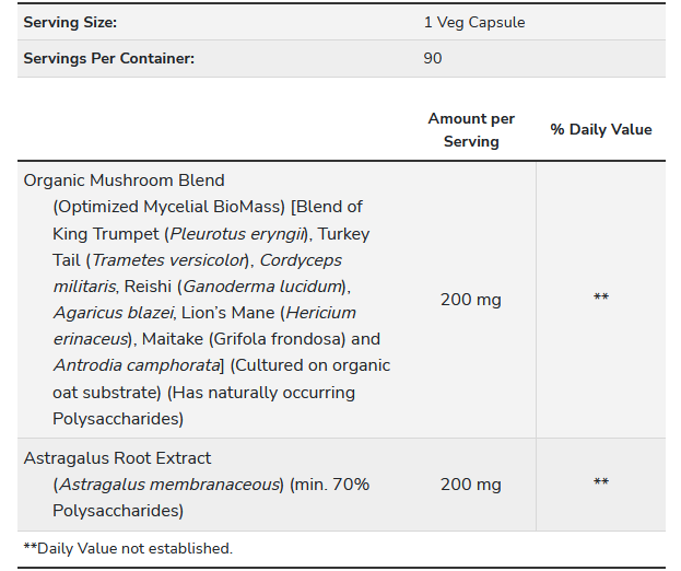 Egyéb összetevők: hipromellóz (cellulóz kapszula), mikrokristályos cellulóz, manióka maltodextrin, aszkorbil-palmitát és szilícium-dioxid.