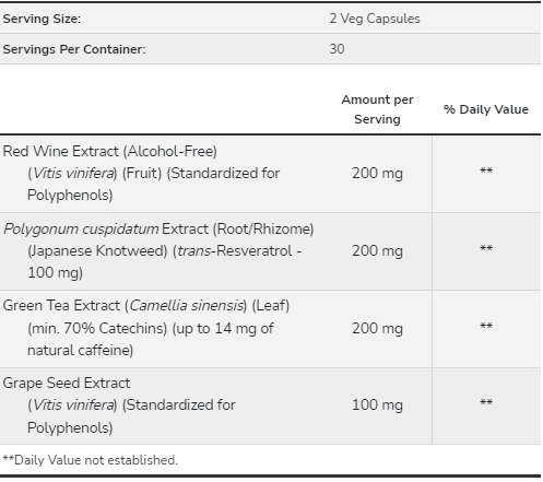 A transzaktivitások kiegészítésére. -resveratrol, ez a termék szőlőmag kivonatból származó proantocianidineket (OPC) és zöld tea kivonatból származó katekineket tartalmaz.